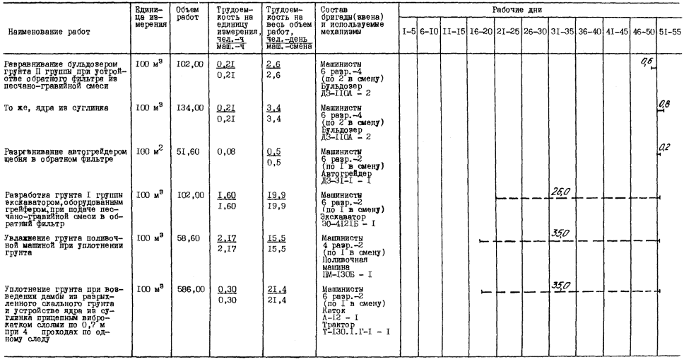 2.7. Возведение дамбы выполняется (при работе в одну смену) для варианта 1 следующим составом: