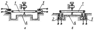 1 - образец; 2 - возбудитель колебаний; 3 - датчик колебаний; 4 - опорное устройство