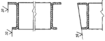 4. Проемообразователи и вкладыши изготовляют сварными из стального листа. Для повышения жесткости проемообразователей и вкладышей следует изготовлять их с каркасом из фасонного металлопроката или гнутого профиля. Формовочные поверхности проемообразователей изготовляют из листа толщиной не менее 8 мм, а вкладышей - из листа толщиной не менее 6 мм.