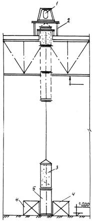 1 - монтажно-тяговый механизм МТМ-1,6; 2 - подставка под лебедку; 3 - деталь № 1; 4 - подмости; 5 - деталь № 2; 6 - анкерный болт железобетонного стакана; 7 - опорное кольцо; 8 - железобетонный стакан; 9 - воздуховод; 10 - дюбель ДВР М6 |